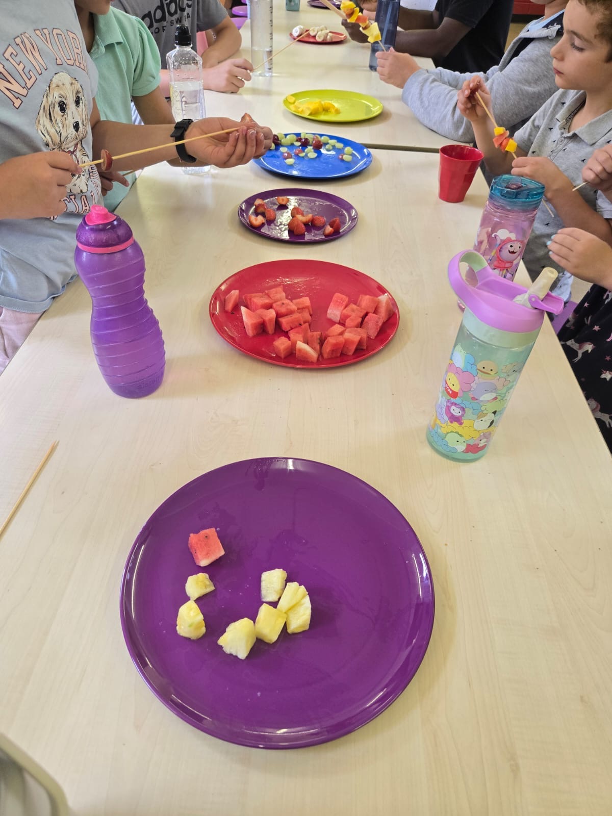 We offer a rolling snack station throughout each day offering a variety of fruit and veg. Fresh fruit and water are always available at the snack station.